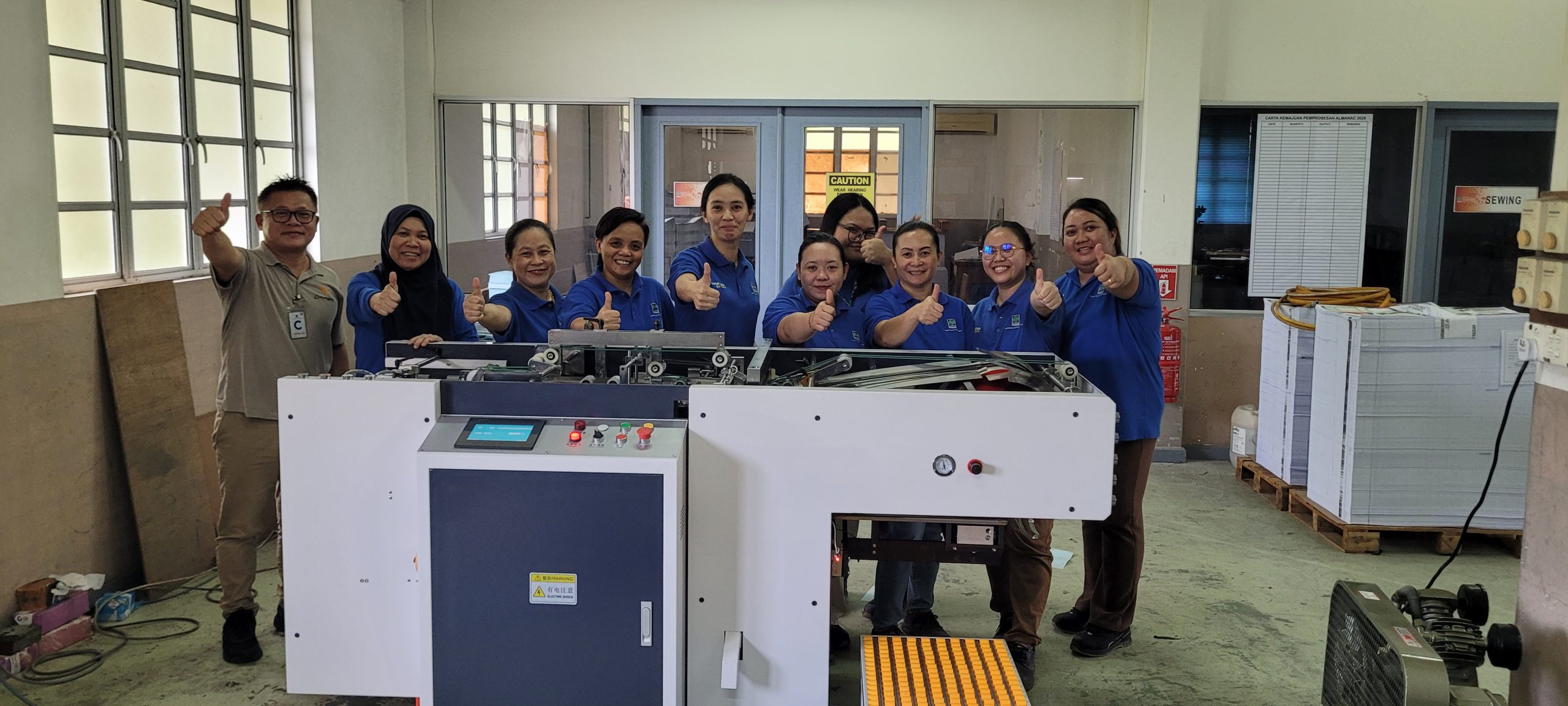 Finish installation and training of Xtreme Automatic Wire-O Punching machine model CK-420 at Percetakan Nasional Malaysia Berhad (PNMB), Kuching, Sarawak branch on December 2025. Everyone was happy and contented with the new machine.